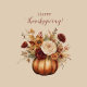 Thanksgiving-Watercolor Pumpkin and Flowers- Wine Label