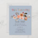 Modern and fun watercolor flowers feature on this Happy Thanksgiving wedding invitation. Dusty blue and orange fall autumn shades.