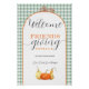 Say Welcome to the guests on your Thanksgiving celebration with this beautiful fall autumn thanksgiving sign. This foam board sign features modern & stylish autumn colored falling leaves and pumpkins with a checkered tablecloth background. Just customize with your information and you're all set to go!