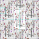 Pretty winter trees patterned fabric With a Snow White background, grey brown trees and pink, purple and orange leaves. Ideal for thanksgiving sewing projects and gifts for winter and Autumn / fall. Original design by Sarah Trett.