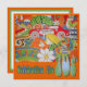 Square pearl shimmer invitation with a vintage 1970s image of an oh-so-70s scene and the sentiment, “Celebrating the 70s” printed below it in 70s-style lettering. The back has a white square with a green border on orange. See matching envelope, favor bag, favor box, favor tag, large gift bag, label, square sticker and wrapping paper. See the entire Disco 70s Invitation collection in the INVITES | Invitations & Cards section.
