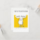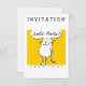 That Cat is smiling and inviting you to a party. Add your own name and party address. Cartoon cat in a yellow and black theme.