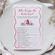 Bring the fun with this That’s Amore “Who Knows the Bride Best?” bridal game card. Designed with bold red lettering, a clean white backdrop, and playful Italian food icons, it challenges guests to see who knows the bride’s favorite things, habits, and memories. A sweet activity to share laughs and stories.
