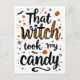 This design features “That Witch Took My Candy” in a classic typography style with candies, stars, and small flowers surrounding the typography. If you’re outta candy, there’s no better way to let everybody know that THAT WITCH took YOUR candy. Whether it’s true or not, that’s up to you! Not gonna judge. 😈Ideal for witch themed gatherings, or showcasing your funny Halloween spirit.