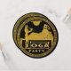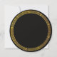 Round pearl shimmer invitation with an ancient Greek black and gold image of a man lounging and enjoying the musical talent of a young boy. The back is black with an ancient Greek gold border.