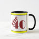 I was thrilled this came out so well. It is a very attractive mug with the colored handle and interior. Being able to personalize it was easy! It was designed for an end of the year thank you gift to the special recipient. perfect. Text lines up perfectly parallel to the top edge of the mug.
