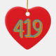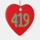 This ceramic ornament features a stylized tribute to Toledo, Ohio, prominently displaying the 419 area code, a badge of honor for residents of the "Glass City" and the surrounding Northwest Ohio region.