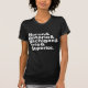 My overall review is that the T-shirt is nice, it fits true to size however the font is significantly smaller than advertised and you can't read it. The printing is unreadable and there is a strain to read it. It does not look like the advertised product. Maybe the shirt color is darker or a larger more visible font should have been used. Photos with and without flash and font is barely legible.