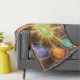 A quality printed throw has its advantages. This is a much finer weave throw than its loopier cousins, and though lighter, it is worth the investment for custom room accessorizing. The back is much prettier than the typical brown, and the fringe on the long sides very vivid, the selvage nicely done. Before photographing, I washed the throw in cold water, delicate, with a thicker woven throw the same size. On tumble dry low, this throw was dry in half the time as the other. This is a very practical quality if you use throws for furniture covers or to wrap up in frequently. The sleekness of the fabric makes it a great layer for accenting or protecting without the feeling of sitting on too much stuff. Perfect for napping or when you feel a light chill coming on. The color printing is beautiful and on this fabric, matched the design and color of my Photoshop image. This is an advantage for blending room fabrics and colors. The fringe on the short sides prints the colors from the design image and therefore varies from the side fringe. I streaked a white fractal line through the plaid pattern to give the illusion of weaving. This printed as crisp as an illusory thread, and put some white in the short side fringe, showing another advantage of print vs loomed- for artistic purposes, line lines, detail, and color integrity can be planned and preserved. My loomed throws have color limitations and more of a needlepoint texture. Print throws reproduce an exact image. The throw felt a little stiff straight out of the package, but this went away in the first delicate wash. Of course I searched the wash water for ink or bleeding and there was none.