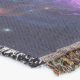 A quality printed throw has its advantages. This is a much finer weave throw than its loopier cousins, and though lighter, it is worth the investment for custom room accessorizing. The back is much prettier than the typical brown, and the fringe on the long sides very vivid, the selvage nicely done. Before photographing, I washed the throw in cold water, delicate, with a thicker woven throw the same size. On tumble dry low, this throw was dry in half the time as the other. This is a very practical quality if you use throws for furniture covers or to wrap up in frequently. The sleekness of the fabric makes it a great layer for accenting or protecting without the feeling of sitting on too much stuff. Perfect for napping or when you feel a light chill coming on. The color printing is beautiful and on this fabric, matched the design and color of my Photoshop image. This is an advantage for blending room fabrics and colors. The fringe on the short sides prints the colors from the design image and therefore varies from the side fringe. I streaked a white fractal line through the plaid pattern to give the illusion of weaving. This printed as crisp as an illusory thread, and put some white in the short side fringe, showing another advantage of print vs loomed- for artistic purposes, line lines, detail, and color integrity can be planned and preserved. My loomed throws have color limitations and more of a needlepoint texture. Print throws reproduce an exact image. The throw felt a little stiff straight out of the package, but this went away in the first delicate wash. Of course I searched the wash water for ink or bleeding and there was none.