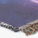 A quality printed throw has its advantages. This is a much finer weave throw than its loopier cousins, and though lighter, it is worth the investment for custom room accessorizing. The back is much prettier than the typical brown, and the fringe on the long sides very vivid, the selvage nicely done. Before photographing, I washed the throw in cold water, delicate, with a thicker woven throw the same size. On tumble dry low, this throw was dry in half the time as the other. This is a very practical quality if you use throws for furniture covers or to wrap up in frequently. The sleekness of the fabric makes it a great layer for accenting or protecting without the feeling of sitting on too much stuff. Perfect for napping or when you feel a light chill coming on. The color printing is beautiful and on this fabric, matched the design and color of my Photoshop image. This is an advantage for blending room fabrics and colors. The fringe on the short sides prints the colors from the design image and therefore varies from the side fringe. I streaked a white fractal line through the plaid pattern to give the illusion of weaving. This printed as crisp as an illusory thread, and put some white in the short side fringe, showing another advantage of print vs loomed- for artistic purposes, line lines, detail, and color integrity can be planned and preserved. My loomed throws have color limitations and more of a needlepoint texture. Print throws reproduce an exact image. The throw felt a little stiff straight out of the package, but this went away in the first delicate wash. Of course I searched the wash water for ink or bleeding and there was none.