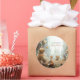 Bring a sprinkle of magic to the baby shower with these enchanting stickers. Adorned with the gentle artistry of a woodland scene, these stickers depict a tender moment in a forest clearing. A lovable bear stands entranced by a butterfly, surrounded by a cast of charming woodland creatures, including an inquisitive fox, a pair of spotted fawns, a wise owl perched on high, a bushy-tailed squirrel, a bashful raccoon, and a sweet hedgehog. The color palette is a dreamy blend of forest green, earthy browns, soft creams, and pastel blues, creating a serene backdrop for the Baby Shower. A keepsake of a day filled with joy and anticipation.