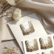 Bring a sprinkle of magic to the baby shower with these enchanting stickers. Adorned with the gentle artistry of a woodland scene, these stickers depict a tender moment in a forest clearing. A lovable bear stands entranced by a butterfly, surrounded by a cast of charming woodland creatures, including an inquisitive fox, a pair of spotted fawns, a wise owl perched on high, a bushy-tailed squirrel, a bashful raccoon, and a sweet hedgehog. The color palette is a dreamy blend of forest green, earthy browns, soft creams, and pastel blues, creating a serene backdrop for the Baby Shower. A keepsake of a day filled with joy and anticipation.