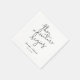 Modern wedding napkin featuring a script text hand written that says "the adventure begins" in black and white. This typography design is minimalistic and works for any season. Customize this product by adding the couple's names and event date.
