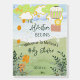 The adventure begins with this classic neutral gender welcome sign. Cute safari friends in a hot air balloon and a bear holding a gold balloon. Easily customizable. Change colors, fonts, styles and make it uniquely yours. Visit our Adventures Begins collection for matching stationery and party goods.