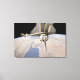 The aft section of the docked space shuttle canvas print