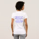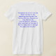 My overall review is that the T-shirt is nice, it fits true to size however the font is significantly smaller than advertised and you can't read it. The printing is unreadable and there is a strain to read it. It does not look like the advertised product. Maybe the shirt color is darker or a larger more visible font should have been used. Photos with and without flash and font is barely legible.