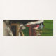 Beautiful but pricey yoga mat used as runner between mirrored closet doors. I chose it for the pattern and colors. Stunning!! It works well for spontaneous yoga poses as well ;-).