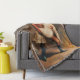 A quality printed throw has its advantages. This is a much finer weave throw than its loopier cousins, and though lighter, it is worth the investment for custom room accessorizing. The back is much prettier than the typical brown, and the fringe on the long sides very vivid, the selvage nicely done. Before photographing, I washed the throw in cold water, delicate, with a thicker woven throw the same size. On tumble dry low, this throw was dry in half the time as the other. This is a very practical quality if you use throws for furniture covers or to wrap up in frequently. The sleekness of the fabric makes it a great layer for accenting or protecting without the feeling of sitting on too much stuff. Perfect for napping or when you feel a light chill coming on. The color printing is beautiful and on this fabric, matched the design and color of my Photoshop image. This is an advantage for blending room fabrics and colors. The fringe on the short sides prints the colors from the design image and therefore varies from the side fringe. I streaked a white fractal line through the plaid pattern to give the illusion of weaving. This printed as crisp as an illusory thread, and put some white in the short side fringe, showing another advantage of print vs loomed- for artistic purposes, line lines, detail, and color integrity can be planned and preserved. My loomed throws have color limitations and more of a needlepoint texture. Print throws reproduce an exact image. The throw felt a little stiff straight out of the package, but this went away in the first delicate wash. Of course I searched the wash water for ink or bleeding and there was none.