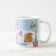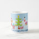 This adorable mug is adorned with woodland animals already to celebrate the Christmas holiday. Sitting around the decorated Christmas tree is a fox, a little grey mouse, with his cup of hot chocolate, a squirrel and an owl. The wintery backdrop of trees has a subtle snowfall to set the holiday mood. The text, which runs along the bottom of the mug reads, "NOT A CREATURE WAS STIRRING." You can personalize this with your own copy or a name.