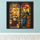 vintage renaissance stained glass design in multi-colors with mary and angel gabriel.