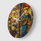vintage renaissance stained glass design in multi-colors with mary and angel gabriel.