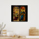 vintage renaissance stained glass design in multi-colors with mary and angel gabriel.