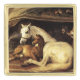 Elegant and classic painting re-elaboration from English painter Sir.Edwin Henry LANDSEER, 18. Century.Beautiful oriental white arabian horse and its colt with dogs,monkeys in an arab tent in vibrant brown,white,red colors.