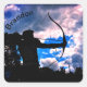 An archery in blue and black ... Arrow and bow with blue sky and clouds