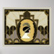 This is a horizontal poster containing lots of art deco elements in black, gray and gold colors, with an art deco illustration at the center. I feel this typifies everything art deco. The Golden Age. This could be used to frame or for crafts according to the size you may want.
