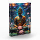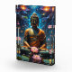 Immerse yourself in the serene power of Ascended Master Buddha, depicted floating above a tranquil lotus pond in a cosmic realm of light and energy. Surrounded by radiant lotus blooms and a crystalline aura, his third eye beams with divine illumination. Clad in richly colored robes, this awe-inspiring vision captures the essence of spiritual awakening, inner peace, and higher consciousness.