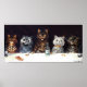 Great illustration by Louis Wain of a five cats at a bachelor party. One tabby is standing and appears to be making a speech while the other four are seated at the table. Two cats are sporting monocles and four are smoking cigars. Featured in "The Penny Illustrated", Christmas Edition, 1896