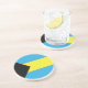 Secure your tropical drinks by the pool with a coaster with the flag of The Bahamas Islands. A Black triangle with aquamarine and yellow bands. The black symbolizes strength. The aquamarine is for the Caribbean Sea which surrounds the islands, and the yellow is for the golden sand of it's beaches.