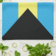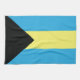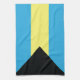 The flag of The Bahamas Islands. A Black triangle with aquamarine and yellow bands. The black symbolizes strength. The aquamarine is for the Caribbean Sea which surrounds the islands, and the yellow is for the golden sand of it's beaches.