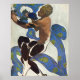 Reproduction of a painting of a male ballet dancer Vaslav Nijinsky's Fawn Costume in 'L'Apres Midi d'un Faune' by Claude Debussy from the front cover of the program for the 7th season of the Russian Ballet as illustrated by Leon Bakst in 1912, from Russia in the Art Nouveau Style. From The Wall Art Shop