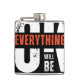 Well made flask, a little better than I had expected. Flask came in clear plastic box which gave it a nice presentation when I took it out of the zazzle packaging. Image is not printed on flask but on sticker. Don't know how this will hold up I haven't used it yet. This would make a Great gift! I plan to purchase more for friends! Cheers. I thought a little brighter than computer. Very crisp, writing wasn't