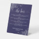 The Bar - Navy Blue & Silver Drinks Menu Wedding Pedestal Sign