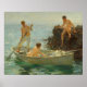 This is a reproduction of “Rocks at Newport” of 1912 by Henry Scott Tuke. Tuke's abiding love was the sea. He was sixty-seven years old when he created this masterpiece. He was a member of the Royal Academy having been born in 1858 York from whence he moved when he was sixteen and entered the Slade School of Art. He traveled to Italy six years later nand between 1881 and 1883 he lived in Paris where he studied under Jean-Paul Laurens and met John Singer Sargent. During this time he met Oscar Wilde and John Addington Symonds. He began his painting in Cornwall in 1883 and his fame gradually grew. In 1914 he was elected to the Royal Academy of Arts having established himself as an independent artist who could afford to work in France, Italy and the West Indies. Tuke died in Falmouth, Cornwall at the age of seventy. This masterwork is an oil on canvas and measures 20 by 23.98 inches. It is in a priate collection.
