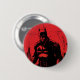 Comic book style illustration of Batman standing atop a gargoyle in Gotham City.