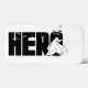 Typography graphic of the word: "Hero", featuring the outline of Batman at the end with a swarm of bats.