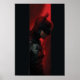Featuring Robert Pattinson as Batman | Batman in side profile under a red light.