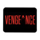 "Vengeance" typography text featuring Batman in the rain standing in front of the letter "A".