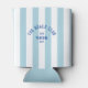 The Beach Club seltzer can cooler is for your group beach trip or get together. Blue cabana stripes with green distressed custom beach club crest. Personalize with the details of you beach trip... year, beach and destination. Perfect for a family or friends beach get together or beach club bachelorette or as a memento for a past trip. Matching accessories available in The Beach Club Blue Cabana Stripe Collection.