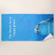 The Beach is my Happy Place personalized beach towel with a blue ocean background and friendly dolphin.