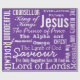 Jesus is a beautiful name for a wonderful Savior. It means "God who came to Save us". Here are seventeen names that are used in the Bible to describe Jesus. Trendy purple background and white lettering with stylish fonts. Easy to use templates to add (or subtract) text. You can change the colors too.