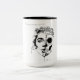 This striking black-and-white illustration explores the duality of life and death, beauty and decay, beginning and end. The artwork is divided into two halves: one side depicts a human face crowned with flowers, symbolizing life, growth, and memory; the other reveals a skull, a reminder of impermanence and the passage of time. The handwritten phrase “The beginning already contains… the end” reinforces the philosophical message behind the image.