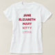 T-shirt featuring the names of the Bennet sisters in different shades of pink from Pride and Prejudice by Jane Austen: Jane, Elizabeth, Mary, Kitty and Lydia. Great for book lovers and fans of Jane Austen.