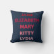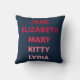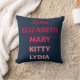 Pillow featuring the names of the Bennet sisters in different shades of pink from Pride and Prejudice by Jane Austen: Jane, Elizabeth, Mary, Kitty and Lydia. A great pillow for book lovers and fans of Jane Austen.