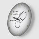 On a white to gray colored background the image of a stethoscope in black. The hour numbers are also in black with a glow of white behind them. On the left side of the clock is placed the text ''The best doctors gives the least medicine''. A beautiful [x-mas] gift for all the doctors among us, for more special gifts feel free to visit our store CREATORS WE ARE here on ZAZZLE.
