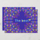Meet your new favorite card - deep dark blue like a midnight sky, accented with vibrant yellow swirl patterns that dance playfully across the cover. A cluster of hearts nestles in the design, bringing warmth and charm. At the center, bold yet whimsical, is the phrase: